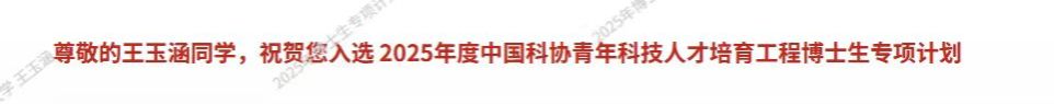 入选2025年度中国科协青年科技人才培育工程博士生专项计划